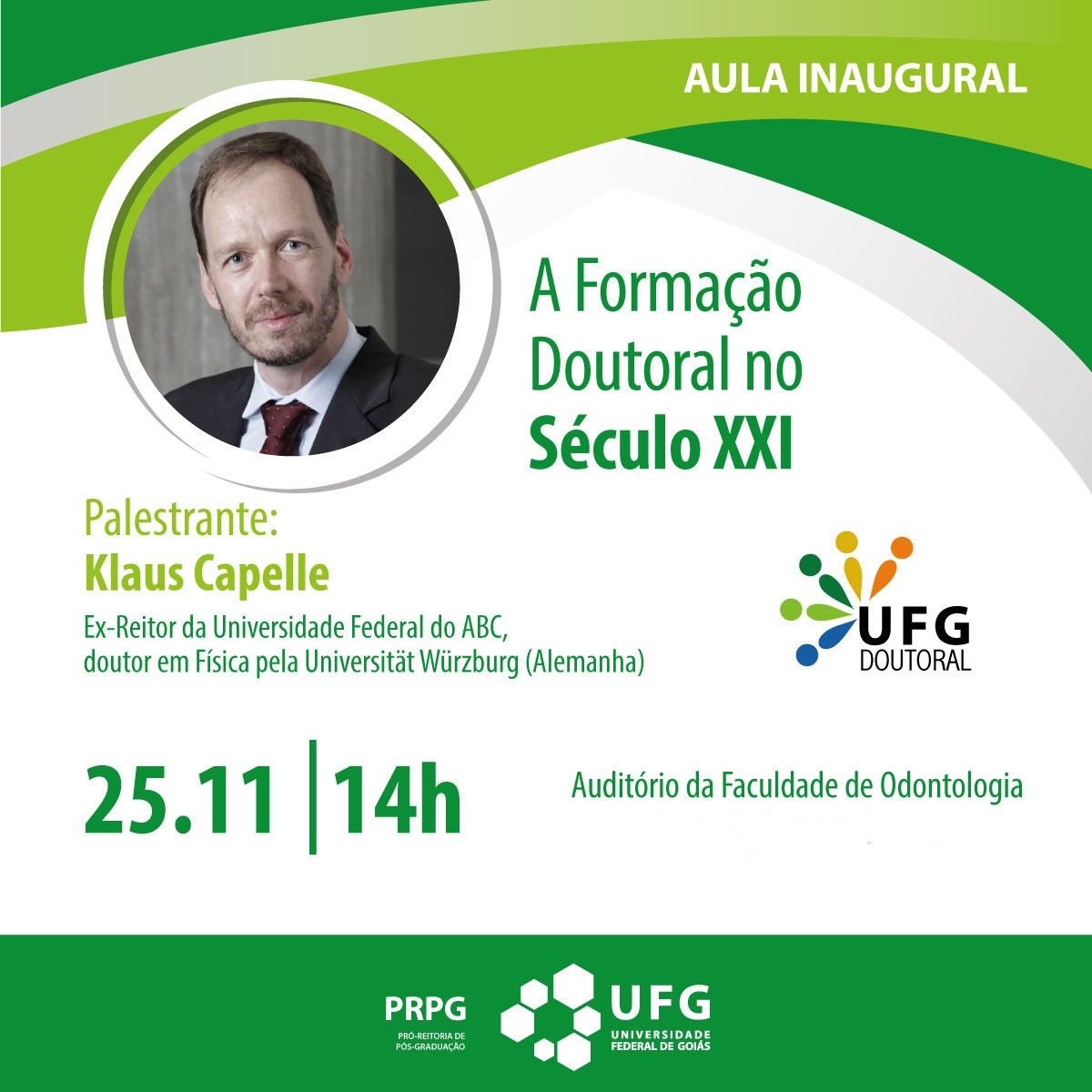 https://prpg.ufg.br/p/31025-ufg-doutoral-promove-palestra-a-formacao-doutoral-no-seculo-xxi-com-klaus-capelle: Auditório da Faculdade de Odontologia