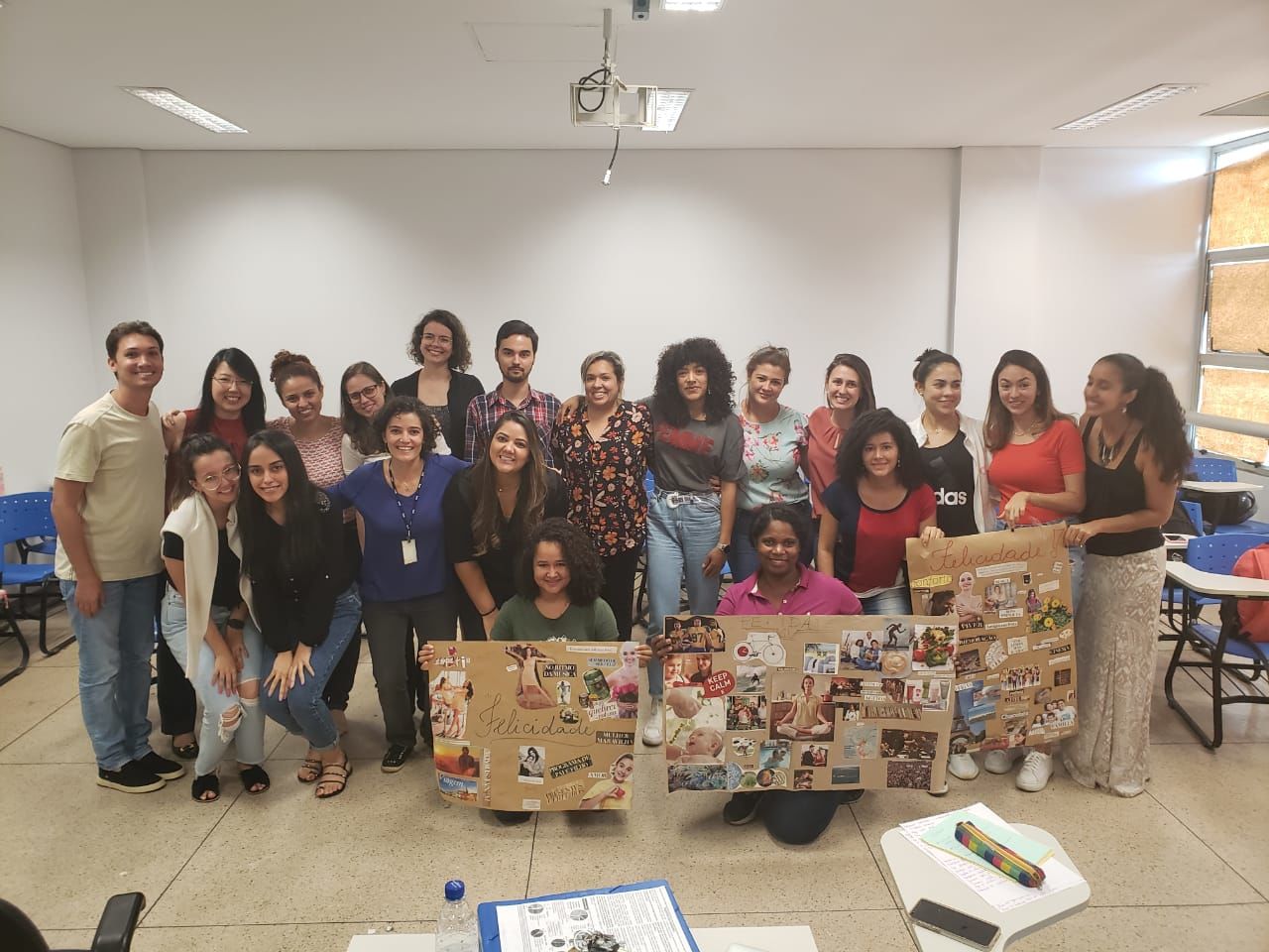 As professoras Camila Caixeta, Nathalia dos Santos e Elizabeth Esperidião ministraram o curso de forma dinâmica e integrada. Os participantes participaram de atividades que envolviam colagens, apresentações em grupo e discussões acerca do que a felicidade representava para cada um.